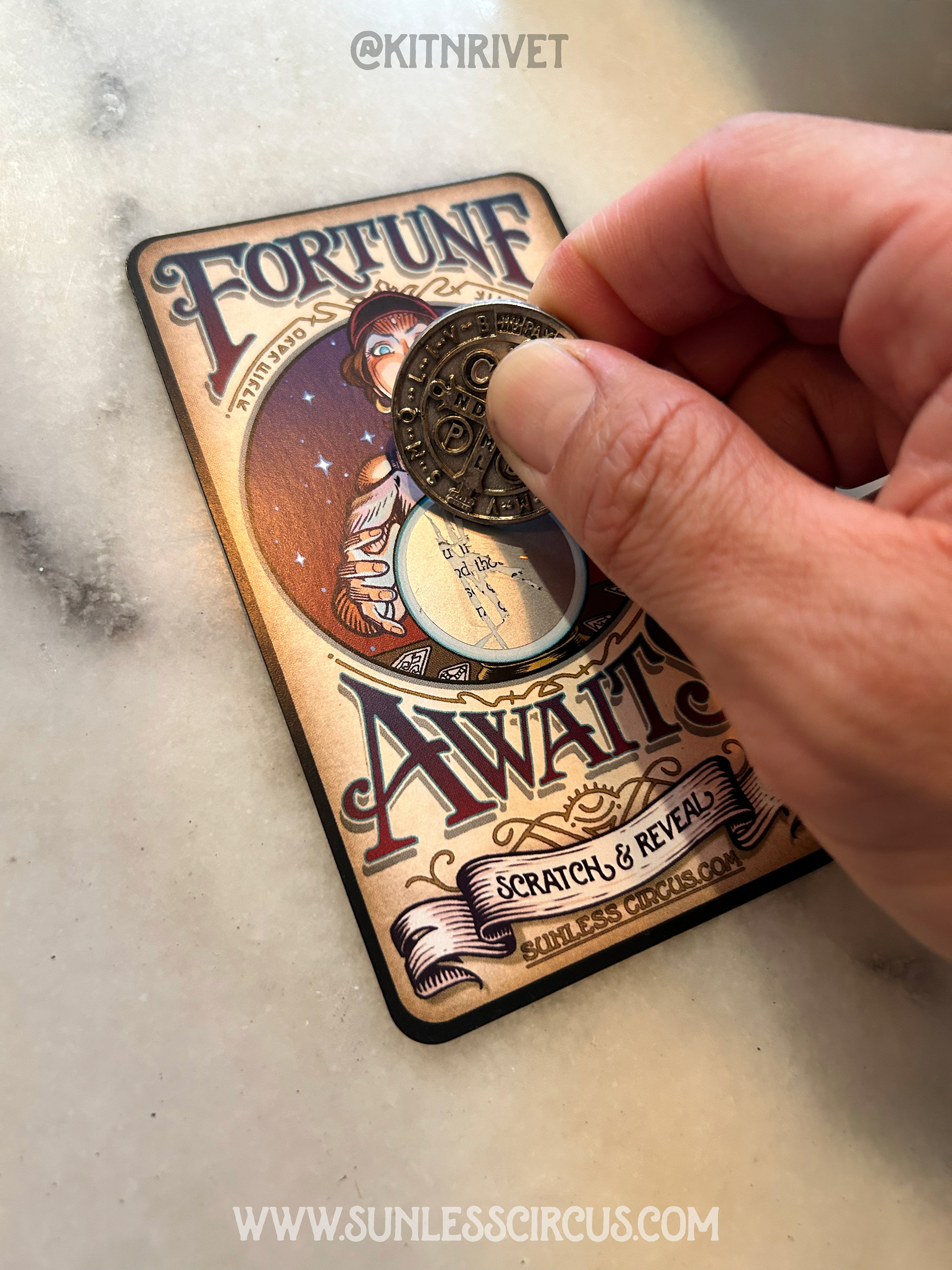 Scratchable fortune cards featuring one of our characters that reveals fun and mystical messages!